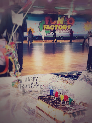 Read moreMy son had a birthday party at fun factory yesterday. He had a blast, but NEVER again. Our party host was the only one covering all of the birthday parties. She was nice but was uninformed on what party package I chose and was pretty sporadic when she actually showed up to help host (I get it she was busy). It was 90 degrees the day of the party and it was cooler outside than it was at the party area and skating rink. The only air conditoned areas were oddly enough by the food area, the game area, and restrooms. Myself and all of our guests wanted to hide out in the restroom or go outside to have some relief from the unbearable heat INSIDE. When it came time to do cake and presents, we asked if they had plastic knives or something to cut the cake, they only carry sporks... it was a messy ordeal but the cake was cut and served with sporks... our hostess was either new and/or overwhelmed with all of the parties. It was my first time at Fun Factory, I read over all the email information when I booked the party, there wasn't any information on how to get skates for your guests, my son had been to a party there before and he informed me that the single ticket in the party bags were for skate rental. He needed a walker to help him skate, I was informed he needed a wrist band AND it was an additional fee for the walker? Ridiculous. Overall, my son had a blast but ALL of our guests were drenched in sweat and miserable not even half way through the party, our hostess was uninformed/overwhelmed with multiple parties that we had to do a lot of the running for drinks and other things ourselves. I'm not sure how this place is still in business, but we...