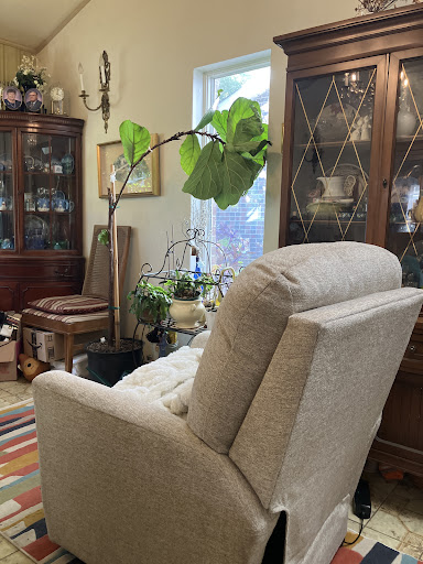 Plus, we were concerned about moving the old recliner to the curb so we thought we'd offer them some cash and see if they would move it for us. My hubby has a bad back and the last thing he needs is to be unable to walk after moving that old heavy recliner. So I asked the guys how much to have them move it and asked if they could wait until my hubby got back from grabbing some cash. To my surprise they offered to move it for FREE!