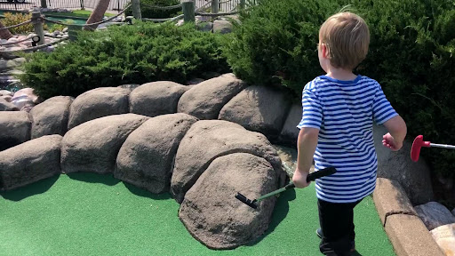 This was a nice place for mini golf. It's right next to the bowling alley and arcade, which means the fun can continue after you've finished the course. I really like the design of the course and detail that was put into the pirate theme. It's an beautiful place to be a bright summer day, although I recommend going on summer nights when it's cool and relaxing. My godfather and I went during the day; we were hot, sweaty, and borderline dehydrated. There isn't a lot of shade or benches to rest on, so we really had no choice but to work our way through in the hot sun. Howevere, my main criticism with the pirate course was the lack of challenges and difficulty. Many of the holes could be completed in two strokes, which results in a really quick game. My godfather and I finished our game in as little as 20-30 mins. We were both expecting it take much longer and we're a little disappointed that it didn't, but all in all we still had...