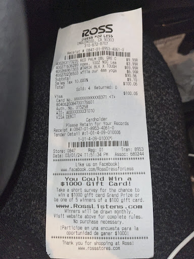 Read moreI went there and bought a bunch of things that added up to $362 I gave $250 on one card and was going to put the rest on another card.. during the process I forgot something on my cart that needed to be charged so I handed her the rest of the things.. I proceeded to then pay the $250 on one card for the cashier to then cancel my order and says I need fo pay the balance of $362 again. How do these people know that I Had sufficient money on me? Why don’t they ask before canceling an order ? $362 is a significant amount of money at least for me it is. That’s 250 + 362.. now I’m down 250 till my bank settles the refund. I called my bank and they said the money would be there in 13 days. So the problem is not on Ross the company, but on the employees they hire. they should get better training. Bc canceling an order with a big significant amount should be asked before canceling. What a shame. Ross is great. The customer...