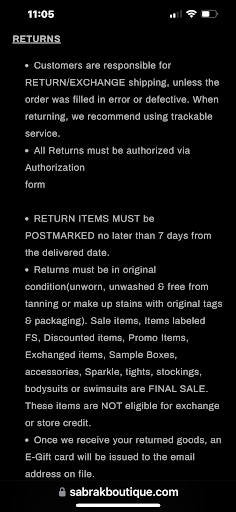 Ā Ā Ā Read moreI shopped here. In oct 3. I bought a dress for. A birthday same day so i was in a hurry to find something I bought a dress knowing was a little big. But i still wanted to give it a try at home but i ended not liking the. Fit so i decided i wanted to return. Or exchange. Because it was an expensive dress that iknow i wont. Wear it i reach out. Through there ig explained that. The dress was to big once. i send the receipt to get authorization to return by mail They decline the return. Because at the cashier. I wanted to sing up for text to get a coupon. Code. Since that didnāt work the cashier offered to give me discount note the item wasn't on sale soo at this store if a coupon is added. To youre item. You will not. Get a return or exchange so be careful what u buy. At this store. I have never seen such policy if u add a coupon ur purchase would be final sale I understand when the item. Is. On sale. Its final but never adding a coupon. Makes it final sale thats a crazy policy. That. Should give information to costumer....