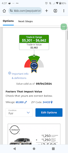 Ā Ā Ā Read moreBrian And Josh are awesome to deal with, after being insulted and lied to by Sam on the offer for our vehicle. We told Sam when we arrived that we looked our Vehicle (2017 Jeep Patriot Latitude Sport 69,000 miles) up on KBB and it said the trade in value was around $9,000, he came back and told us our vehicle KBB value was only $4,700 (he appraised it at "fair" when it is in the good to very good category in my opinion). So I got pissed at his insulting offer and got my keys and left after some back and forth of him trying to convince me to stay and try to work something out, but I saw no sense in that since he literally just told me, that his absolute best offer would be $5,300 because he would do me a favor and wave some other fees on a vehicle we wanted to purchase. After leaving I went back on KBB and tried to figure out where his B.S figure came from, and even rating it at "fair" condition, and literally unchecking every single feature on KBB it still had a trade in value of $5,900, but once I ran it again with all the correct boxes checked in "fair" condition, it came back at $7,600. So basically, whatever paper Sam tried to lie with and show me with the KBB logo printed on it saying $4,700 could not have possibly even been for my vehicle considering there was no way KBB was appraising it that low with bare bones. About an hour after we left, I got a call from Josh (General Manager) to see why we couldn't make a deal, I explained all of what happened, and he offered me $9,000 over the phone for my vehicle, and assured me if I returned to make a deal he would put me with a more competent Sales Person. I returned and Brian took awesome care of me, I left about 2 hours later With my wife's awesome priced 2024 Jeep Wrangler, and also ended up getting $10,000 for my trade that "S-c-AMā tried to convince me wasn't worth more than $4,700, and that he was doing me a favor by giving me $5,300 for it. After my brief interaction I had with āS-c-AMā, I was dead set on not purchasing what would have been my 2nd purchase there, or ever again quite frankly, but luckily Josh and Brian came thru and saved the day..... Now that I've got all my venting out of the way, had it not been for Sam I would have rated higher than five stars if I could. Long story short, avoid āS-c-AMā at all cost and just ask for a competent salesperson to help you, my suggestion will always be Brian!! Edit, I've added a screenshot of my vehicle they now have listed for sale, that would only bring maybe $5,000 at auction if they were lucky according...