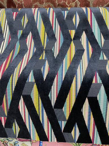 Besides a store full of various upholstery weight fabrics, they have vinyls, samples, swatch books galore, leathers and to my surprise, wall paper! When l learned not only do they make custom pillows supply upholstery service, they make outdoor cushions, various window shading styles (like Roman shades) and custom drapery. A serious one stop shop.