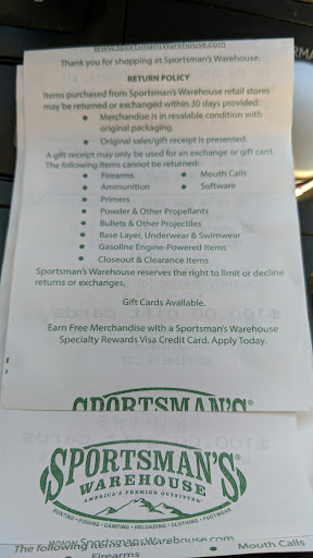 Read moreWorse customer service experience ever. Two employees Three âemployees I talked to seem like they were brand new didnât know where anything was and the fish associate acted like I was disturbing him. The younger short guy almost balding with white hair not the older one in the Guns department didnât know where anything was . I asked for ponchos and he told me a totally different area than where are located. I saw one manager dude with the long beard helped one customer and then walked away and didnât interact with other customers. The organization that the store has is confusing. You have items not where you would normally put them and out of place. Assorted hooks they had one selection and were out of stock on the others. This store need better management and employees that actually know and have knowledge of the whole store, this store will go out of business with improper management and unfriendly and inattentive and unprofessional employees. I he lady that was in the clothing department was very helpful and actually know the location of the ponchos. The response from the owner was so offensive, many of the reviews on here have the owner replying back with a 1-800 and a email to address further issues. Attention: owner of the Columbia SPORTSMAN'S WAREHOUSE- Are my issues less than what the other 1 star reviews have similar issues? They got a better response than me. My Google reviews get 130k views daily. My review will stay at 1 star until proper management is hired with actual staff members caring about...