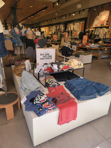 Read moreThis place offers great quality clothing with a solid selection for guys, the styles range from moderate baggy to ultra baggy, which is perfect if you're looking for a modern fit. Most items are made from cotton or linen, so the fabric quality is definitely high. The variety isn't huge, but almost everything is stylish, their jeans come in different washes, shades, and ripped patterns. T-shirts are either plain or have simple designs, most with great cropped cuts, not too long and just right for a clean look. But the advertising is misleading. "50% off"? Not exactly. The discount only applies if you buy two items, so the savings on a single item are much lower than expected. Prices are high, baggy jeans are around €80, and the t-shirts aren't cheap either. The section with the “from €10” it’s filled with outdated styles or items that don’t look great, and many are still oddly expensive. The staff is unmotivated and not very welcoming, and the fitting rooms are bad: no...