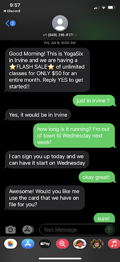 Ā Ā Ā Read moreOn July 7th 2021 the general manager Jenna text messaged me about a $50 unlimited month offer and I agreed to it via text. I came almost everyday of the 30 day month and tried to maximize the offer. I enjoyed the sculpt classes and vinyasa flows, and the teachers were nice. This is unfortunately not a review for the teachers, although Iām sorry because I did enjoy some of the classes.