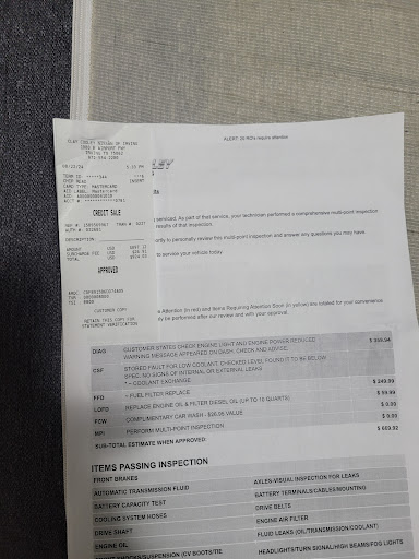 Read moreI have loyally brought my Nissan to dealerships for service since buying it, and to Clay Cooley Nissan of Irving specifically since 2019. The service here is consistently awful. It seems like no matter what you bring your car in for, or whether or not you made an appointment, you will be trapped here for the better part of a day and they will run a diagnostic and find that you need $2K+ worth of service. Every. Time.