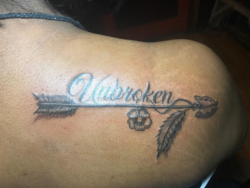 Read moreTraaaaaassssssshhhhhhh if you value your skin and actually want what you’re paying for don’t go here. My cross is completely gone as you can see. And the “forgiven” looks dusty. I used A&D ointment on it as instructed and this is the result just two weeks after getting them done. Confronted the OWNER of the shop who DID the tattoos and was told that “it’s because of my skin”. Mind you he didn’t even get up from his couch to look at the tattoos and inspect my issues or concerns. I’ve seen people of my complexion with red ink tattoos and it never looked like this. I asked for a refund and was told no. The owner’s resolution was that he can do it over with a thicker needle and darker red. Still not what I asked for. Left dissatisfied and still with faded tattoos. The only reason they got one star is because I had to give one in order to write a review. Don’t waste your time or...