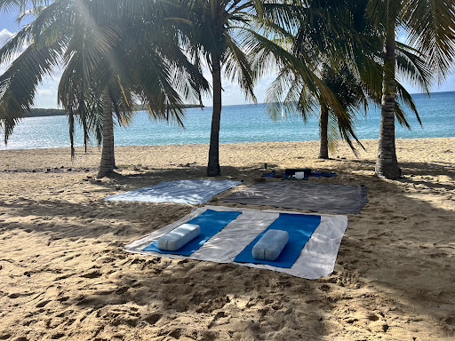 I attended Collette's Saturday morning sunrise yoga class a few weeks ago. It was wonderful!! A nice balance of an energetic, slower flow and stationary postures. For an early morning yoga practice I like easing into a strong flow to start off the day, but not a fast paced "power yoga". I also appreciate having the time to hold postures, but not as long and extensive as yin. (I personally prefer yin later in the day.). Collette's guided the asana practice using clear instructions and cues. She offered an intention at the start of class and ended by repeating the intention and a nice savasana. The view from the rooftop lit by the early morning sun was spectacular. I can't wait to come back to Vieques....and when I do I will definitely attend Collette's classes. ...