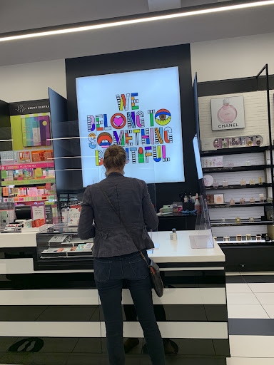 After watching meme videos of how a customer is likely to be treated at Sephora, I was genuinely afraid to stop in here. After all, I'm an old fat witch with ancient ideas about makeup that need refreshing. How would I be treated? Crushed my teeth into my chewing gum and opened the door, holding my breath, waiting for a smug non-greeting or an eyebroll. I got none of that. Instead a plush, relaxed greeter said hello and methodically pronounced the "Welcome to Sephora, what can I help you with today?" in a low, calm, matter-of-fact tone. Well, I was looking for something specific and the greeter showed me right to it. Miracle! In stock! Grabbed the one thing, then looked all over for one other thing, but found myself confused about which shade to get. The greeter to the rescue! She helped me decide. Walked to the register at the back and skimmed over the tantalizing mini products, then completed my purchase and was quickly on my way. Once home I was super relieved to discover that indeed the shades of blush and facial sunscreen were the right ones for me. A win all around! I would not hesitate to return to this location. Easy parking in the mega lot, decent selection, helpful employees, and as of this moment, testers are back so you can see what products blend well and which ones require some finesse, etc. Yes,...