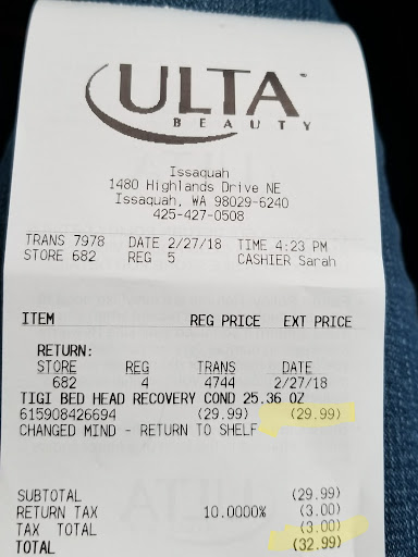 Read moreI usually don’t write reviews after THIS many trips in to one store, but after tonight, I feel like I had to. The Issaquah Highlands Ulta has THE BEST customer service. Tonight I was in the store and my first search was for some thing to help me with my “maskne” 🙄 Yes, I’m 38, haven’t had acne in years and now wearing mask every day I’m breaking out like a teenager. I really wish everyone would wear name tags and I honestly should have asked their names because now I feel bad not having their name in this review… but the first lovely Ulta member that helped me, walked me through lots of different options for acne washes and not only that but also asked me about all of my current products and come to find out two of the products that I was using on a consistent daily basis were part of the reason my skin was drying out as bad as it was. And previously I was thinking that was a good thing to dry out the acne. But wahhhhlahh, learned something new. I ended up getting the juicy organic serum. After that I went around in my mask trying to smell all of the perfumes because I am a long time Escada moon sparkle person and that has been forever discontinued to my knowledge. I found a pack of all these little mini samples that I considered buying and the second lovely Ulta member that helped me, said “ well instead of buying that let’s just set all of these up and let you smell them all“… she literally went around and probably smelled over 20 perfumes with me. I ended up buying a coach one and an Ariana grande holiday set. I just love this place. Great people. Great products. They take all of my money, 🤣 but it’s well worth it. Thank you Ulta Issaquah for hiring awesome people who are knowledge...