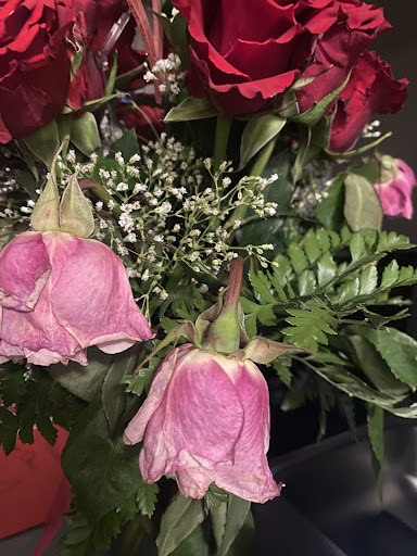 I received flowers from this florist via my boyfriend by special request based off of the previous reviews, I adore flower arrangements from local florists and especially appreciate how much longer the flowers last from one versus from a grocery store. The pink flowers are the ones that were ordered from this shop after only FIVE days. The red roses actually came from Walmart and they were thrown in by him the same day to improve the look of the arrangement due to the pink ones already not looking the best. Very overpriced for an arrangement that was ordered ahead of time and only...
