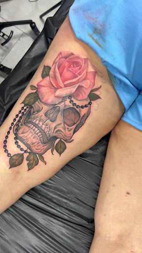 This was my third time going back for a tattoo. Be aware, I drive over three hours to come to this shop. I have looked into and visited many shops around my area, and as every shop can't be the same style you want in tattoo work or actual atmosphere at the shop, it should have a high standard to cleanliness and relationships with the clients. I have never been disappointed with any aspect here. From the look of the shop, how the artist prep and clean up after, how their attention to cleanliness is above any I've seen, how they communicate with each other, how I've observed those who are apprentices ask questions and genuinely look to be listen to what's being said, how the artist directs those under apprenticeship with clear communication and guidance to build their skills further is honestly amazing. The atmosphere at the shop is something to be noticed all on its own apart from the work they do. A shop can get busy and hectic at times, but they work together to serve as efficiently as they can. I appreciate their attention to detail in the running of the shop and the quality of work they do too. I haven't gotten tattoos done by anyone else since my first trip here. I would love to see more shops operate to this standard. I know there are more, but I wish this was the normal. They are a high standard I...