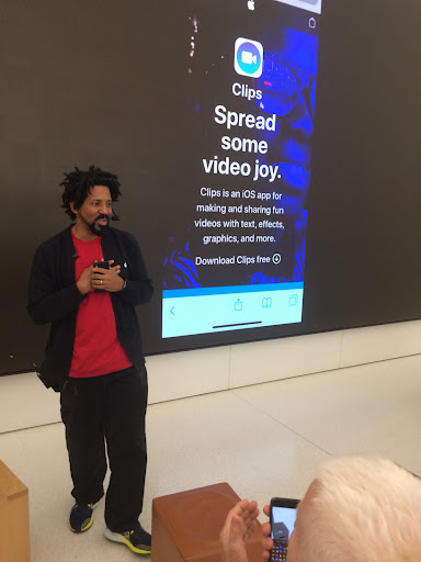 30 December 2018 class at Apple Store with Jakumi. In this class we learned how to make video using the âclipsâ. This was a informative class and the instructor made learning the new app relatively easy. The use of the main video board allowed all the users to easily see Jakumi navigate the app and allowed us to easily follow along. The instructor was knowledgeable on the topic and able to answer questions that we had. I reccomend him for future Today at Apple classes.