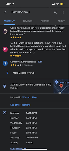 Read moreThis postal annex is not the best place to ship with. I’ve always used the postal annex on yopp rd and they people are so friendly. They make you feel at home every time you enter the place. I went into this postal annex for the first time and NEVER AGAIN. First off, due to them being privately owned, they have their own rules. YOU MUST WEAR A MASK OR YOU WILL BE TURNED AWAY, REGARDLESS OF BEING VACCINATED. (They turned away the lady standing behind me even with her asking if this was allowed even with her being vaccinated and the state mandating that with being so, you can refrain from wearing the mask) ..Okay, so that’s their right. Well what got me was, the fact that the gentleman told me he would not be giving me a receipt with the tracking of the items I dropped off to ship. I was told that they don’t provide a receipt of any sort for any packages being dropped off. It’s their rule or policy, regardless of any other postal annex doing so. I proceeded to inform this man that for anyone shipping an item off, wether they have their own shipping label or not, a tracking receipt is beneficial for the seller due to the post offices possibly losing an item and this confirms your shipment, or rather, protects you as the shipper when selling with mercari or posh. After I insisted to be given my packages back, to take to the postal annex on yopp (which is where I normally always go), he decided “he will do it this one time and print me a shipping confirmation”. And he made sure to inform me that this one time thing wouldn’t happen again. Not a great place to do business with when shipping items to loved ones, friends and family or any businesses. I’m not sure who owns this place, but it may be beneficial to “not make up your own rules or policies” when it comes to just being a secondary...