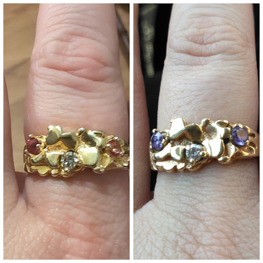 I don't like giving bad reviews Tim is a nice man but my ring was altered and I'm very upset my ring doesn't look or feel the same I've had it for many years it's very sentimental to me being in the same plaza I try to have good relationships with the businesses around I should have had more of a discussion about my expectations but I never expected to for this to happen we should have weighed my ring and discussed what kind of pink stones I wanted because I was expecting cz chips I have some I just can't find them since I moved and I'm tired of gluing them for temporary fix so I wanted to just have them replaced I waited over a month I thought they had lost it at that point when I finally picked it up I thought it was a fake replica because there was a high carat polish on it he took it right back and took it off said most customers like it ask before my skin color doesn't go with orange then I took it and I'm walking and looking at it...I turn around go back Tim was gone it didn't look or weigh the same felt completely different if you look at the pictures it was a bumpy beautiful nugget ring now it's flat and the stones are a dark pink not what I thought I would get I can live with the color its the flat look of it and it has no weight to it 😭 There is nothing that can be done to make it right all I asked was a simple stone replacement and you said the prong had to be fixed if you would have asked before "making it look new" I would have told you no I have a lot of sentimental value to the ring during covid someone offered 1000 for it and I wouldn't part with it now it looks completely different and I can't take it back put the gold back to how it was not flattened I've never heard of alterations to property without discussing I regret having the stones replaced. I believe other people should know so they don't leave their valuables to be altered to...