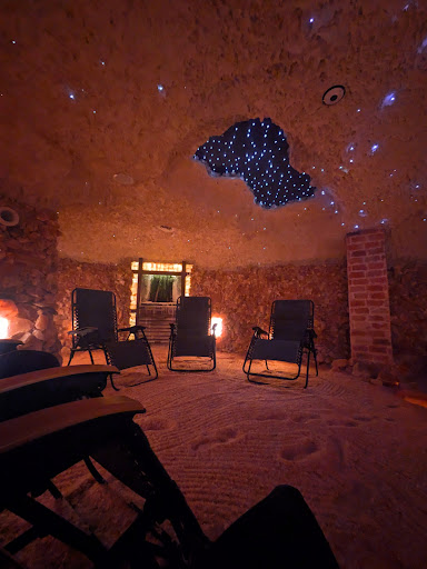The salt cave: unlike ones you see in other places, they are one of the only salt caves in the area that have a specific pump that sprays micro, superfine salt into the air that adds to the benefit of sitting in the cave.