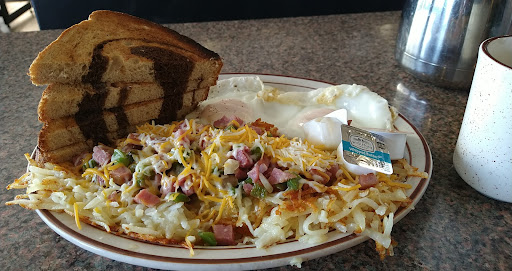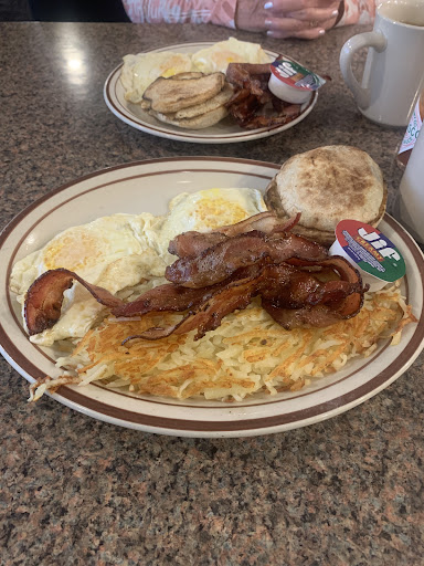 No frills, seat yourself truck stop restaurant with a very efficient, friendly staff even though they were busy. Lots of local regulars which is a good sign. Eggs, hashbrowns, English muffins were well cooked and came out quickly. 4 strips of bacon with my meal and 5 strips for my wife since she didn’t order hash browns, Bonus points for that! Coffee was...