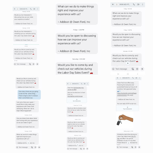 Well, you left off the door panel because I said I wasn't taking it back with out it in tack, the way I brought it to you. You told me I would have to pay $116 to put the door back together. So no I'm not paying it. I did have someone else fix the door. Yes I did order the part from you because I need that paper work to send to the warranty company. I talked to the warranty man for over a hour. And in fact is is a factory recall. He said it's alot of paper work for them to get the money from the recall. That will be dealt with. Also you didn't do me no favor. You refused to replace the vehicle door and return it to me the way I brought it to you. Ad then you told me the battery cables were a recall too. So I'm a bit confused... Also when he told me he had to pay the mechanic himself.... I didn't know your supervisor payed the mechanics. I believe that Mr. Owen pays you all who work for them. I'm not disrespecting Mr. Owen at all. I felt like because I was a women they could tell me anything and I would believe what he said. Well I don't need a man telling me nothing. I have the brocken piece and pictures of how my car was gave back to me.. a mess. Plus the part that had to be replaced was alot more work to get to. And that's why you didn't want to replace it.... My family has dealt with you for over 40 year's and baught hundreds of trucks cars from you. But I'm not putting my family name out there. But they will NEVER come back. For there is a lot of people that are disappointed because of...
