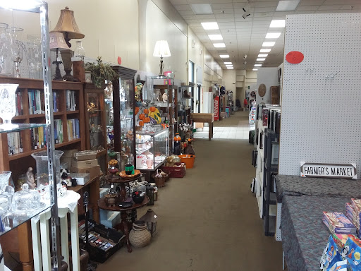 Currently open 7 days a week, there are various sized booths of various items and collectibles. Vintage vinyl, depression glass era glassware, candles, coffee/canned foods, clothing)-shoes, shirts, Jean's), ceramic crocks, baking items(-enamel pots, stainless steel, glass, Tupperware, aluminum baking and mold pans, silverware, dish sets), toys, postcards, jewelry, coins, tools. It's like going to a big enclosed garage sale. The items ea have price and vendor booth tags, so one can put all the items they choose in a shopping cart and continue shopping the whole market area, and pay upon exit.( the tags will be removed so ea separate vendor will get their individual credit) There's probably something for everyone....my daughter found a pretty green glass decorative vintage bottle with metal screw lid($2) I found a water bath canner and lid with jar rack for pint size canning($5) . The cashiers were friendly, it wasn't crowded and we spent probably an hour looking around. Lovely way to find that unique item or gift. Parking is abundant, handicapped parking close, no stairs. Didnt think to ask about restrooms, but I didnt notice any signs. Shopping carts are indoors at front of store. Its located near grocery and other stores....