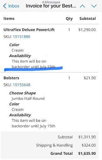 I had to track down a customer service number myself, and despite all this, I still don’t have my table or my $100 refund. I’ve emailed again, but no response.