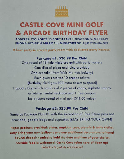 Read moreThank you for a wonderful birthday for my 6 year old son !! Everything was awesome today including the mini golf, arcade, party room, employees and all.. my son and ALL of his friends loved it and had a great time. The mini golf holes were soo cool and the kids loved it. Veronica the birthday host at Castle Cove was excellent ! She was very nice, attentive to the kids and kept a fun smooth flowing party for everybody.. The party room was very nice and they were very easy going with timing, details, etc. They only have one party at a time so that was great as well. I would highly recommend visiting there and having a birthday party there ! Very fair with pricing as well and good value for everything the kids got....