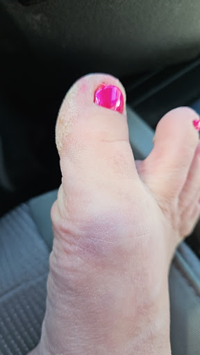 Photos show my mani and pedi when I got home. I know my toes and nails are little stubs because I'm a picker but this looks like a 5 yr old did it. You can also see how my feet were...
