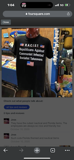 Ā Ā Ā Read moreThis is a great store and I would highly recommend it for all.I see alot of bashing being done over politics. I think it is sad that someone would leave a false review just to hurt a small business that has the right to their views. I am sure you would't hate your neighbor if they had a bumper sticker you did not agree with.Everyone has a right to their own views and if you do not agree you don't have to shop there.But telling lies about this business is wrong. We decorated our entire patio a tiki theme and found some really nice signs,shells and other cool stuff there.I will recommend this shop to...