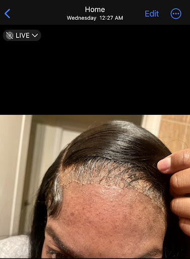 When I got home, I realized the wig lace was ripped, over-plucked, drenched in undried glue, and lacked a wig cap underneath for protection. It was also lifting on both sides. A friend, who isnât even a stylist, drove an hour to fix it before my photos. As you can see, the final unedited result looks way better than what was originally applied.
