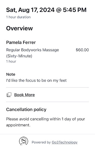 So to summarize, I didn’t receive the service I booked for and was asked to pay $80 instead of $90 and for 60 mins instead of 90 mins with a totally different service.