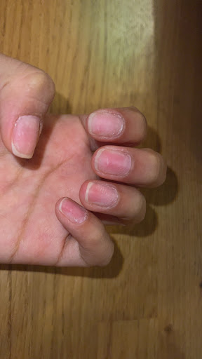 Read moreVery disappointed and upset. First and last time at this nail salon. I regret not going to my usual nail salon. I got a gel X nail set done. My design was short French nails with a few beads on the nails. Everything was fine up until I got home. My cuticles began to hurt badly and they were very sensitive. I thought maybe the nail technician had trimmed and filed my cuticles too much so I tried not to pay attention to it. They next day I woke up in even worse pain. My cuticles were swollen and even more sensitive. I couldn’t take the pain anymore so I started removing the nails. As I was removing the nails, the nail came out from UNDERNEATH my cuticle. The nails were pushed so far into my cuticles which is why they were hurting and became agitated. It was such a relief once all the nails were off and my hands felt so much better. As you can see in the photos my cuticles are still a bit red and so are my nails. I’ve never had this experience before. If you don’t know how to do gel X then you shouldn’t go ahead and do it anyways. I kind of was getting those vibes as the lady was going my nails. She was having trouble sticking the nails and she was overflowing them with so much gel. I’m glad my nails are doing better now and I’m never coming back again. What a...
