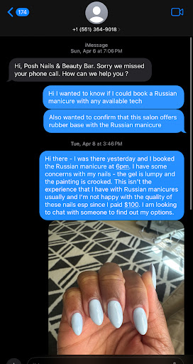 Read moreBooked a Russian manicure for over $100. Did not receive one - it ended up being a gel manicure essentially. Russian manicures are meant to be dry manicures - they soaked my nails in water and didn’t have the proper equipment to remove my previous base color. I’ve been getting these types of manicures for years so I am very familiar with the process. Reached out to the shop following my appt and requested my nails be fixed and was reassured that I would be assigned with the technician that specializes in Russian manicures. I altered my work schedule, got to the salon, and was told that they were unaware of my appointment and that the technician was out sick (no notice given to me). I would use caution when booking.