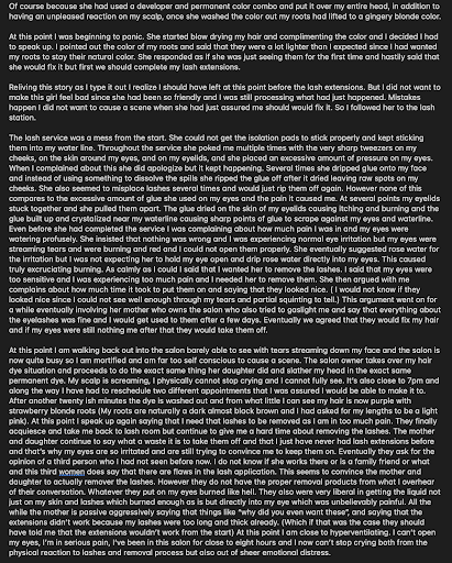 EDIT 8/27/2024 I do not like writing negative reviews about small businesses and I have debated whether or not to edit this review for several days but my experience upon returning to this salon was so horrible and genuinely traumatizing that I feel like I have to speak up. My most recent visit to this salon literally put my health and safety at risk and I am very lucky that I am only dealing with fried hair and sparse eyelashes and not anything worse but I do not want what happened to me to happen to anyone else.