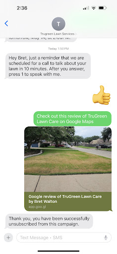 I have cancelled my services with Trugreen and my balance paid. I know that there are other not so well known companies out there that can do the same services if not better than Trugreen. You know when you have to start advertising, it's not...