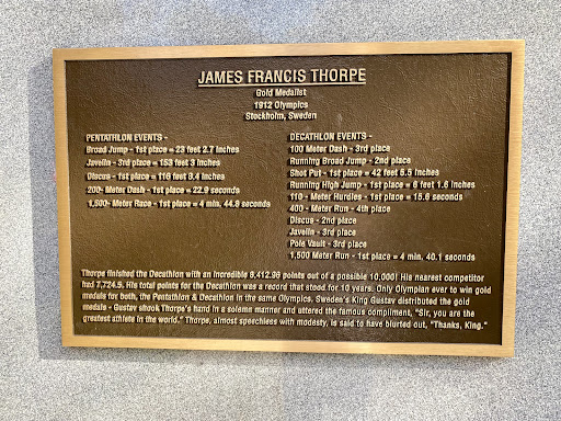 Read moreAn in-depth look at the life & legend of Jim Thorpe "The World's Greatest Athlete" from his time running track, to his stint playing baseball, to his career playing pro-football for The New York Giants 🏈 it showcases how J.T. absolutely CAPITALIZED in sports! It also details stories about his parents in & their ties to being incredible athletes! On another note, there is also specific information to records he set as a world class OLYMPIC ATHLETE! It is easily worth a trek in order to witness a phenomenal athletes achievements & accomplishments brought to life thanks to a caring...