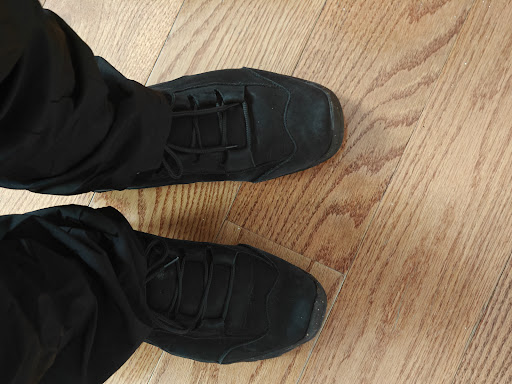 My friend, wife, and I were definitely being Sold To, but I wasn't seeing anything that caught my eye. I told the owner as much and she went to great lengths to find me something boring that also fits my abnormally wide feet. No winners, but she recommended me take the insoles out of a near-fit.