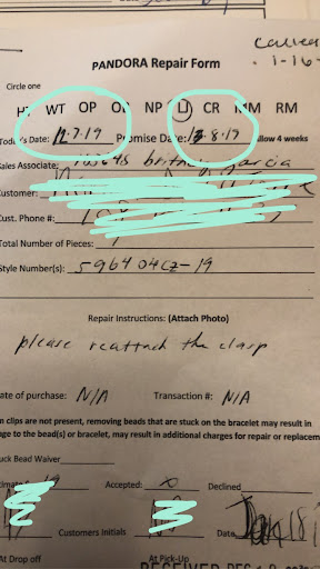 Read moreAfter buying my daughter a bracelet and charms for her birthday. After couple of times her wearing it the lock broke off. She went and try to exchange not even return it. And they said it was wear and tear but she's only had it for 2 weeks! The return policy is 30 days. I also paid for warranty and wasted 30 minutes listening and questioning what it cover they make it sound so guaranteed it will be covered. But then she said it couldn't go through the warranty until after a year. Very Very very disappointed at this location and Pandoras policies. Will never again buy another Pandora anything. Also they never found my account from my previous purchases. Had to make a whole new account. So I tried looking on my new account for this purchase to call corporate and is not there. Luckily I have receipt, but I'm sure they erase all purchase histories to not have proof of purchase. Since no one saves receipts this days. I don't recommend you buying Pandora it gets all nasty and rusty anyways. The girl in this location name is Erica very rude and not helpful. Don't throw away your hqrd working money to...
