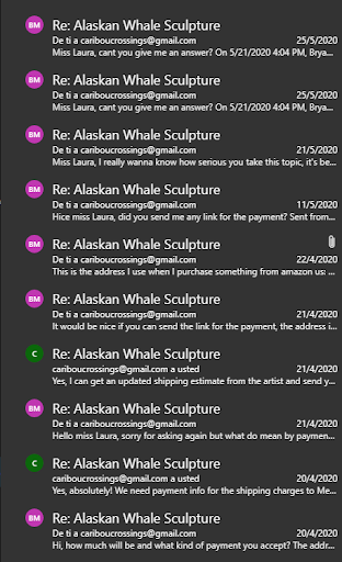 Read moreCaribou Crossing/ The Alaska Box may be a 5 star store. My experience overall is 2. My son sent us a gorgeous glass fish art piece.It was over $600 incl. shipping, and it arrived with possible damage. That means it looks like it has a crack, and my fingernail catctches along the line. It is not continuously smooth like the remaining 99% of the piece. I took pictures of the glass piece, and the packaging and sent them along to Caribou Cr. I received a reply that they would forward the email to the artist, for their advice. The artist replied that's how it's supposed to be. So, except for the place where my fingernail catches...I might agree. I have other fused pieces. I asked a local glass studio to look at it for me (in MA), and they declined stating they would agree with artist. My advice: if you fall in love with a glass piece, try to do it LOCALLY. Avoid shipping for obvious reasons. If you are in AK and are taken and must have it......inspect it carefully and take pictures, just in case you have questions later. It may save you some grief later on. Update: I'm re assessing my review as the owner of Caribou Crossings is giving me options and doing everything to make this a positive...