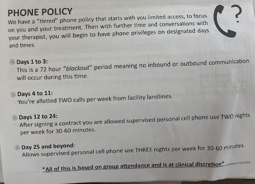 Read moreI can only share my experience starting from the phone call of explanation of the facility, which i was lied to about. -“ The privacy and serenity of these surroundings, protected as they are from the distracting hustle…” that’s on their website; you are literally off a loud and busy highway, it’s not fenced in or protected. and there are no “walking trails.” -from their website again, yes they have an amazing cleaning staff, but no. your doors aren’t being cleaned every 30 minutes. -you do not get your cell phone until after 25 days. You get 2 15 minute phone calls a week in a communal setting. They will tell you multiple different stories about phone usage. -No it is not strictly 2 beds, they will put 3 in a small room. bring an extra blanket, bc it’s freezing inside. And know the bathroom has no door, just a curtain, so your roomies have access. No safes in room, check in all good belongings with staff, as there are no door locks and people can, and do, walk in and out of your room. -It is not on the beach, it’s in a reconstructed strip mall. Residential patients will get bussed to the beach between 5:45- 6:45 am. no, they do not have many different groups. it is the same thing each week with a new handout or youtube meditation. Go to progress group though. I wish i had Griffin as a therapist, bc i can not say better things about him: -no group therapies with art or music. -no problem effort in night time “fun.” bingo, karaoke, game night. If set up. -gym hours are quite limited, as are the uncleaned pool times. (basically during meal times.) -and NO, THEY DO NOT TREAT OR WORK WITH CO OCCURING EDS.