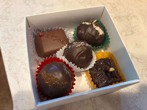 Read moreI love this place not only for the chocolate (decadent, delicious, and surprising), but also because it is fun being around someone who loves what he's doing and does it with passion. It's easy to get into an informative conversation on chocolate, truffles, candies, flavor combinations, etc. . . If you're lucky, you'll meet Dale's mother who can often be found lending a supportive and helping hand. You can feel good about your purchases, as Dale uses organically grown, Fair Trade, & locally sourced, ingredients whenever possible. Did I mention my favorite is the dark chocolate, orange, and cardamom, but Dale always pushes me to try something "outside my comfort zone." I'm never disappointed (although the orange is still my favorite). The store also stocks a wide variety of chocolate bars, along with some unique t-shirts, stationery, and other items to remind you of your...