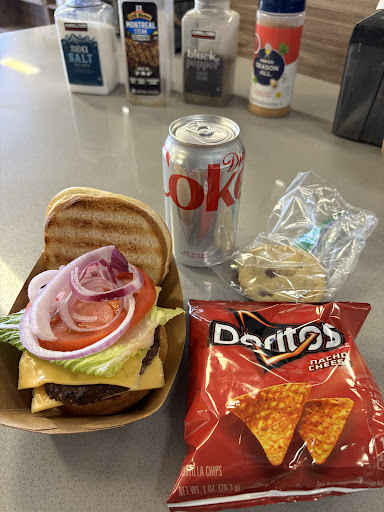 The “dirt” burger combo, $8.00 includes a cheeseburger, choice of can soda, choice of bag of chips and a fresh baked cookie. Eat Like a Local. Cheap eats in Kanab. This will not be for everyone but I have now been back many times, I cannot believe how oddly tasty this 100% “do it yourself” burger bar is. This is an experience! Think of it as a Kanab secret menu🤫 The taste is more in line with a flame-broiled Burger King burger. Ask the nice person at the register for a Dirt Burger Combo. You will pay and they will hand you a ziplock plastic bag with a preformed burger patty in it. You will then season it to taste and put it in the automated flame broiler, as well as the bun it you want it toasted. Pro Tip; the burger takes 4 minutes so wait just over 1 minute before putting the bun in. When you burger drops in the finish pan, use the tongs to get it and then add your fixin’s, grab your soda, chips and cookie. The photos tell the story. For a 8 dollars cheese burger combo “experience” its worth it. Again, this is not for everyone. Kanab...
