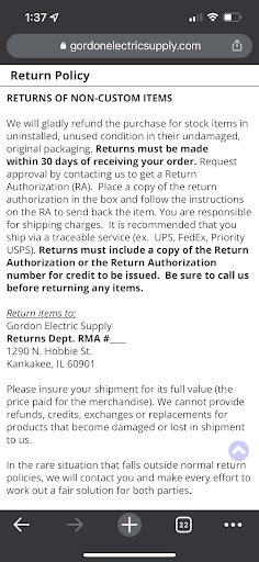The most infuriating part was that there was no attempt to communicate any of this back to me, I had to systematically extract this info out of Gordon Electric step by step, email by email, phone call by phone call and month after month after literal month. I will not be returning and I will not be using the $5 off your next purchase coupon. Not delivering material on time causes planned work to be re-planned and done again for which $5 is not worth...