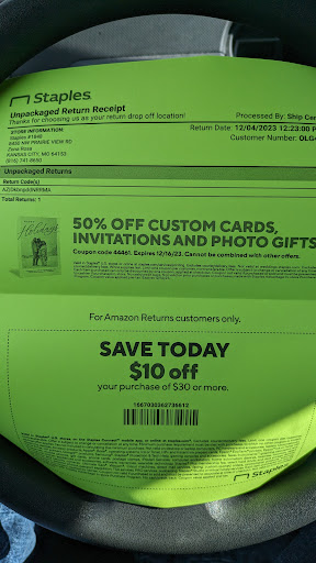 I order prints from this Staples frequently, but the experience continues to get worse. The store often opens late, and thereās consistently a long line with little to no urgency from the team. The staff routinely blames being āshort-staffed,ā but after months of the same issue and printed signs all over the store making excuses, itās clear this is a leadership/ accountability/ culture problem, that is causing a staffing one.