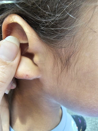 Second, the piercing itself was awful. It was very painful and unprofessionally done. The staff showed no compassion to my daughter, who was in pain and crying. When my mom saw it, she pointed out that the piercing was too low. Unfortunately, being an easy-going person, I didn't take it seriously at the time. However, as my daughter continued to experience pain, I realized the piercing was too close to the edge of her ear, raising concerns about the possibility of her ear tearing. As a precaution, I removed the earrings to allow her ears to heal.