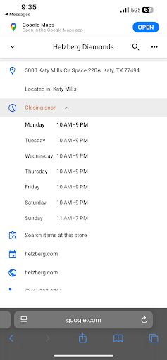 Helzberg Diamond Outlet at Katy Mills Mall is in a prime location inside this large shopping center. It’s on the corner, right by the food court, so you can’t miss it. Helzberg doesn’t always have the absolute lowest price, but the quality of the diamonds is high, and the service is courteous and respectful. It’s one of the better places to shop for diamonds and other jewelry, conveniently located in the middle of this large, suburban...