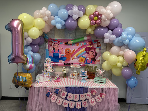 DECORATION AND COORDINATION SERVICE: The hosts really know what they are doing. I brought my own dessert stands and didn't even have to use them because theirs were better than what I brought. The decorations were so beautiful. The team worked with me on the logistics to get our taco guy set up and food set up. Anything I was missing, they had it - serve ware, trays, extra table for beverages. They also have a megaphone to help you coordinate transitions and announcements. They provide a cart to help with set up and are seamless in transitioning between gifts to favors. There were SO many balloons which made it feel so festive. They even tied balloons on the favors which was such a special detail for the kids.