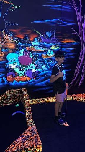 We took our 5-year-old to Monster Mini Golf for our weekly family outing, and the experience delivered exactly what we were hoping for: something fun, easy, and well-contained. We only did the mini-golf course, which runs through a themed blacklight environment filled with pop-culture, horror, and monster artwork. The props are fun. Some of them move or make sounds, and while the course footprint is small, theyâve made good use of the space with creative obstacles and a few familiar classics like the laughing clown. No windmill, sadly, but there was a loud animatronic skull that nearly pushed the fear-limit for our little one. That said, the vibe stayed kid-friendly and playful the whole way through.