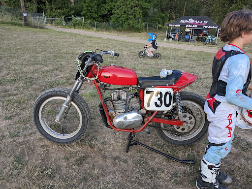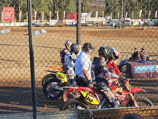 Simple old school Flat Track TT easy and fast to get to. Close parking to general admission gate. Awesome tailgate parties kids on minibikes having fun. You can go back and forth to grandstands and tailgating parties, and all are so inviting and hospitable. Very affordable admissions. Suggest you bring bleachers clip on seats and blankets and small cooler. Watch the Osprey birds land atop the track light poles after getting fish from the river to feed their babies. Usually people have things for sale like a swap meet outside the track gates. Be sure to bring tailgate lawn chairs and an awning during warm weather races. Some food vendors etc...but hit the pizza or sub shop before entering the venue. I take the next exit and hit subway then come in...