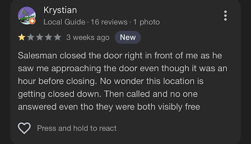 Javier went above and beyond to make sure I left the store satisfied—not just with the purchase, but with the overall experience. It's rare to come across someone so dedicated to helping customers and restoring trust in a brand.