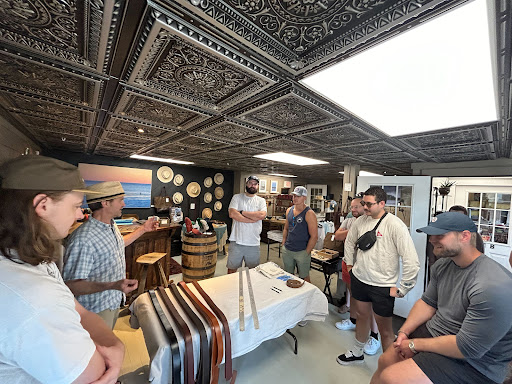 The 12 of us arrived, with no belt making experience, and by the end of the 1.5 hour workshop we all had finely crafted belts, engraved with special customization that made it feel truly like our own work. Dan, Tad, and Ally were helpful, clear, and excited to be a part of the day’s festivities. They encouraged us to embrace the little nicks and imperfections, because they made our belts unique and our own (much like a marriage has it’s own nicks and imperfections, but is held together forever by strong leather/love!). We laughed, we pounded leather, we cried, and we pounded more leather... this was more than a belt making class, this was a memory making class. Now every time I wear my belt I will think fondly of that morning and day, and every time I am in Kennebunk I will certainly be stopping by to visit - as should you!